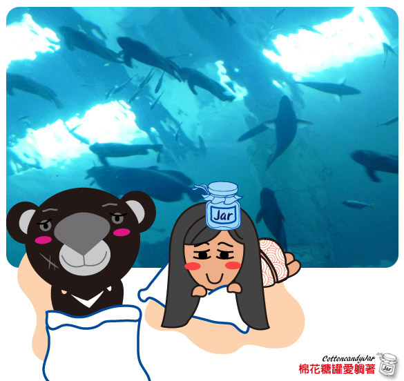 一早醒來,微弱的光線從外面進來,看到頭頂都是魚喔~這樣的景象忍不住讓人想多躺一會。