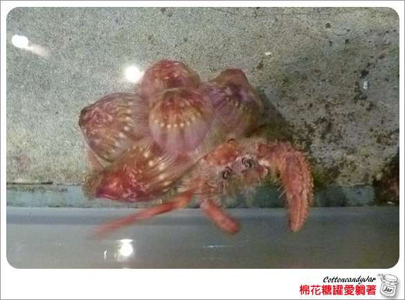 這邊是供大家可以觸摸的觸摸池,大大的寄居蟹,他的殼有點軟軟的,他一直擠到鏡頭前是有話跟我說嗎?