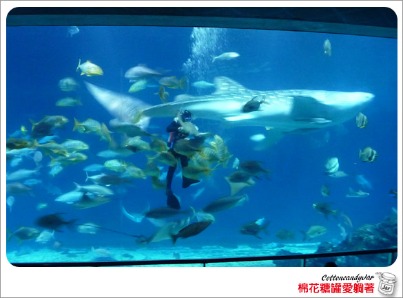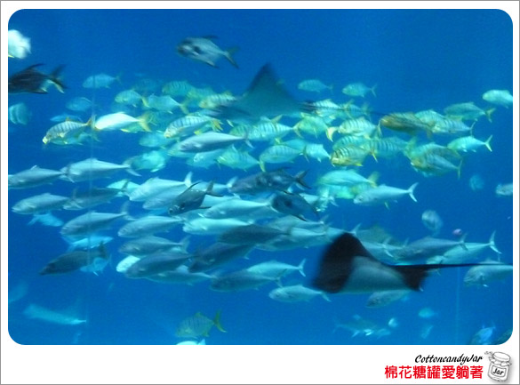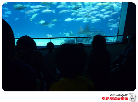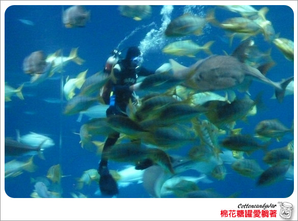 全衝到餵食的潛水員那~我們在外面看好像很好玩,但是聽說之前有個新的潛水員下水去餵,被有隻魟魚聞出來他是菜鳥,把他的頭含著要咬下去,幸虧那個新的潛水員閃得快...,後來新的潛水員都會帶安全帽下去。